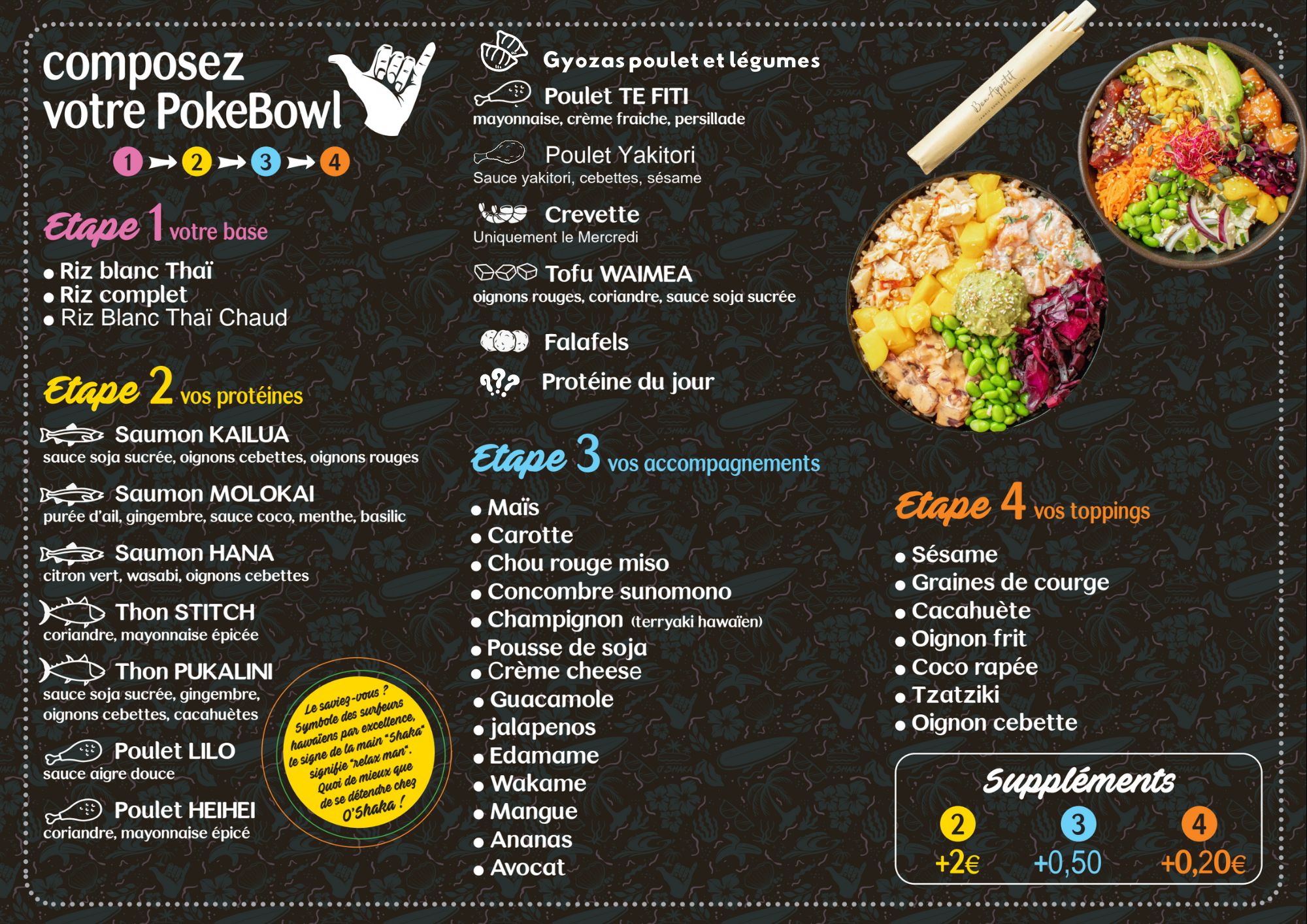 Nous proposons une formule étudiants à 10€ composée d'un pokebowl et d'une boisson. Nous effectuons également une réduction de 10 % pour les employés de mairie, policiers, et pompiers.